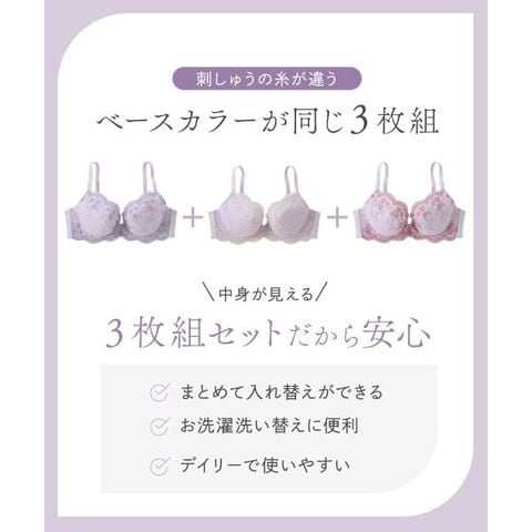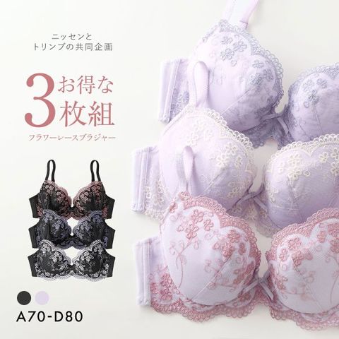 【ニッセンとトリンプ共同企画】フラワーレースブラジャー3枚組 ABCD