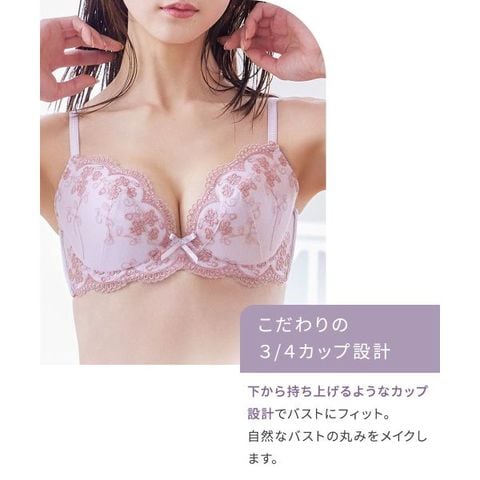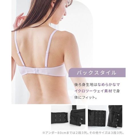 自然な丸みを作り、バストにやさしくフィット。伸縮性のある肩ひもで、ジャストフィットします。後ろ身生地はなめらかなマイクロツーウェイ素材で、身体に心地よくフィット。ボリュームパッド付きで、きれいなボリュームアップを叶えます。