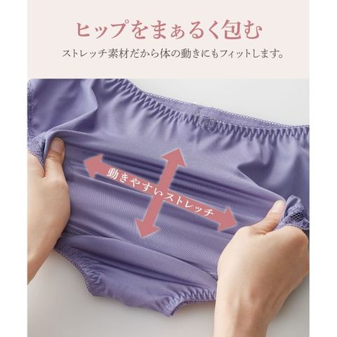 ショーツはストレッチ素材で快適にフィット。バックレース仕様でアウターにひびきにくく、毎日でも履きたくなる心地よさです。気分に合わせて選べる豊富なカラー展開も魅力です。