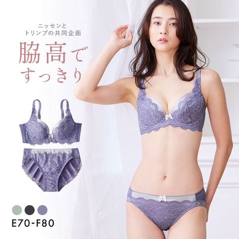 【ニッセンとトリンプの共同企画】脇高編レースブラジャーショーツセット EF