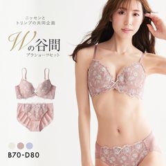 ニッセンとトリンプの共同企画から豪華な刺しゅうレースのブラ&ショーツセットが登場。華やかな刺しゅうレースが施され、素肌を花で包むような心地よさ。