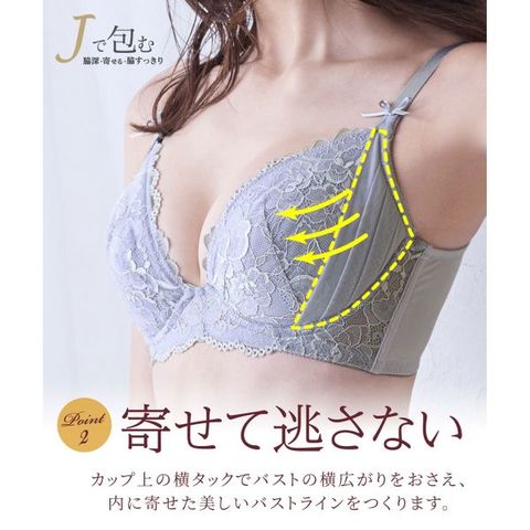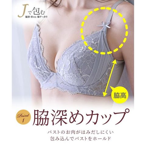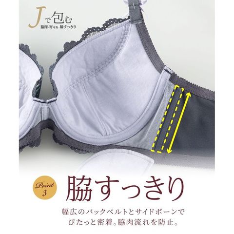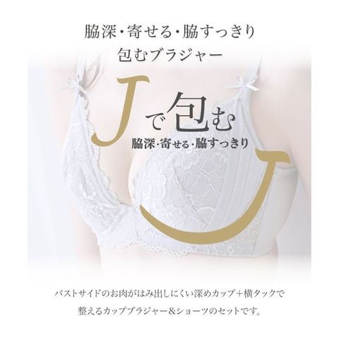 ニッセンとトリンプ共同企画のJで包む脇高ブラジャーショーツセット。