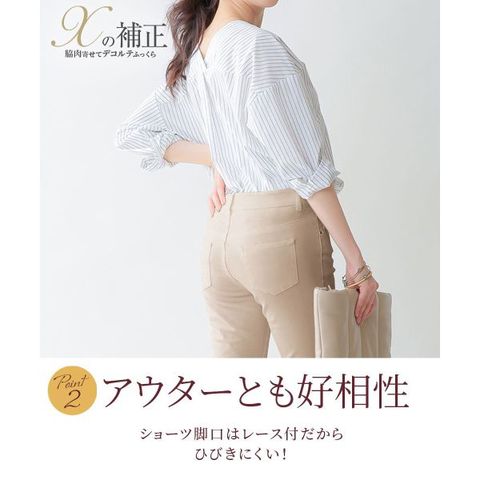 やや深ばき丈なので、ヒップを優しく包み込み、安定したはき心地。縦横に伸びるストレッチ素材が、身体の動きに合わせてぴったりフィットします。脚口はバックレース仕様で、パンツスタイルでもショーツラインがひびきにくいのが魅力です。