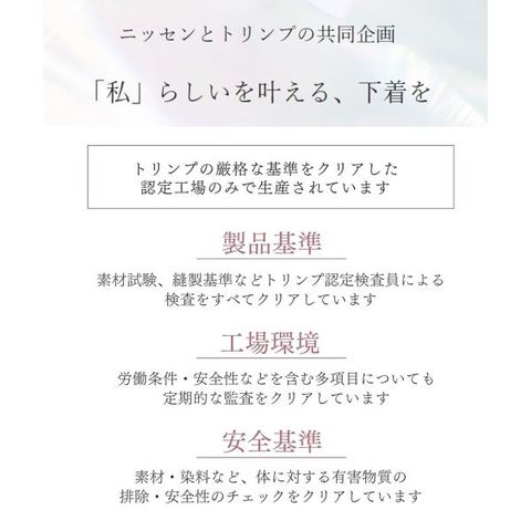| 素 材 | 身生地: ポリエステル90% ポリウレタン10% 裏打:ポリエステル65% 綿35% レース部:ナイロン ポリエステル ポリウレタン |