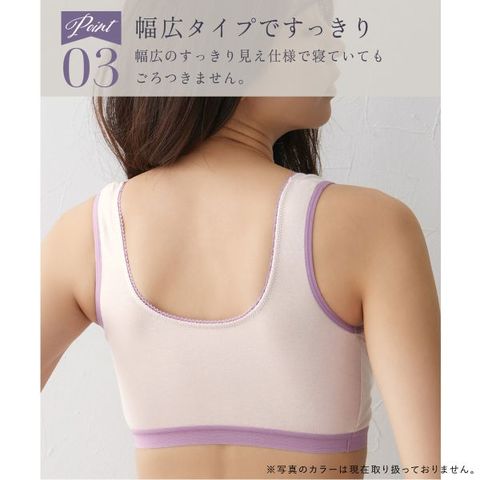 | 仕 様 | ・フルカップ ・ホックなし、かぶりタイプ ・パッド:あり(取り外し可) ・パッドポケット:あり |