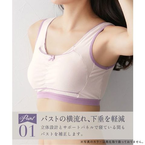 就寝時にもおすすめの、ニッセンオリジナルブラジャー「n,Dream」。ワイヤーやサイドボーンなしでも、バストを寄せて安定させるパネル構造で、寝返りを打ってもバストの揺れや流れを防止します。