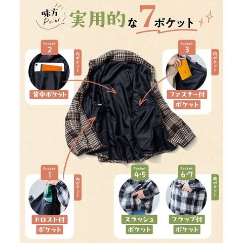 ニッセン 多ポケットチェックシャツジャケット ハンズフリー 私の味方服 SM nissen
