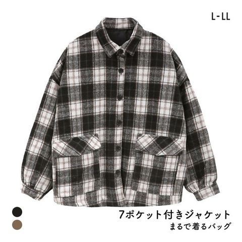 250926 チェック柄 シャツジャケット 多ポケット ハンズフリー 羽織りもの アウター トップス レディース 女性用 軽量 軽い 快適 手ぶら 普段着 旅行 レジャー 春物 秋物 カジュアル ゆったりめ 大きめサイズ ファッション イベント