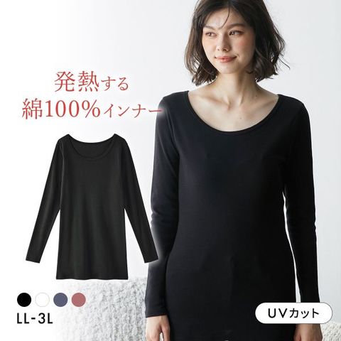 ニッセン 綿100% ウォームコアコットン ロング丈長袖インナー LL 3L 吸湿発熱 UVカット nissen