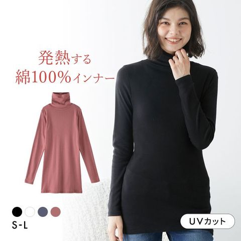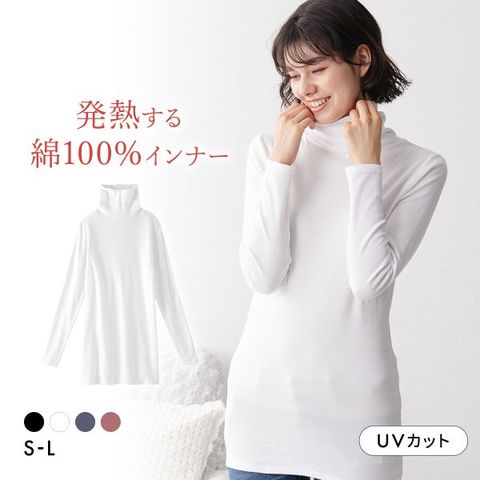 吸湿発熱機能で着ているだけで暖かさが続き、首まで暖かいタートルネックがしっかり防寒。静電気が起きにくい綿100%で、冬の不快感を軽減します。