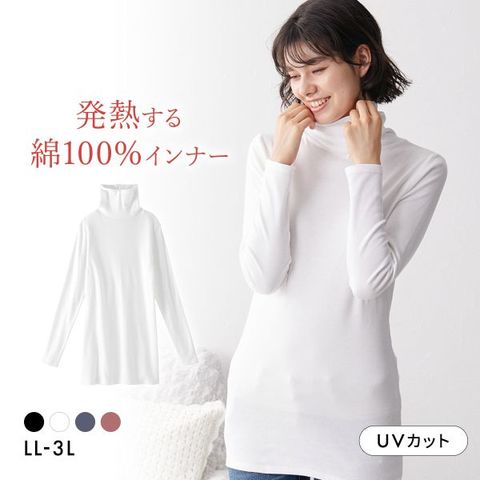 ニッセン 綿100% ウォームコアコットン ロング丈タートルネック長袖インナーLL 3L 吸湿発熱 UVカット nissen