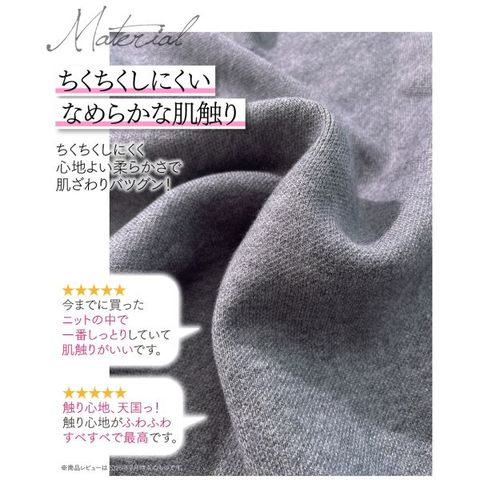 チクチクしにくいモチモチとしたやわらかさと、ストレッチの効いた素材で、快適な着心地を実現。スラックスや光沢感のあるスカートと合わせれば、高見えスタイルが完成します。もちろん、カジュアルなデニムとも相性抜群です。