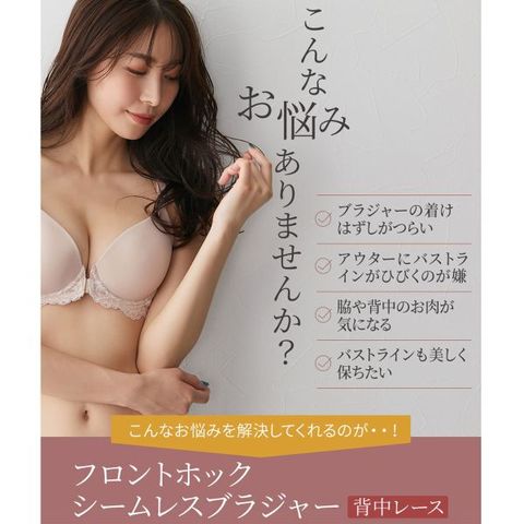ニッセン フロントホックシームレスブラジャー(背中レース) ABCD nissen