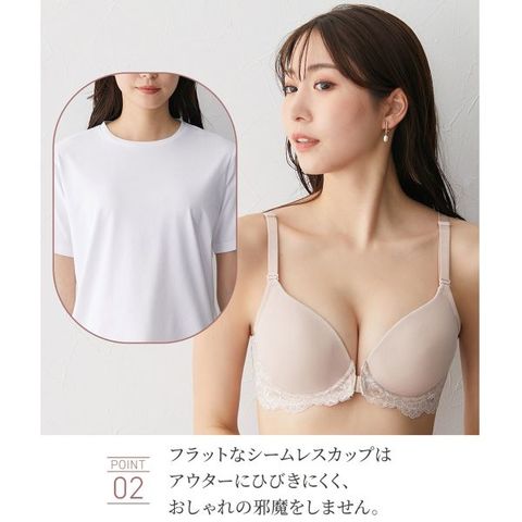250904 251113 ブラ 下着 3/4カップブラジャー レディース 女性用 フロントフック 前ホック 前開き 響かない ひびかない ひびきにくい Tシャツブラ ラインレス シンプル シームレス