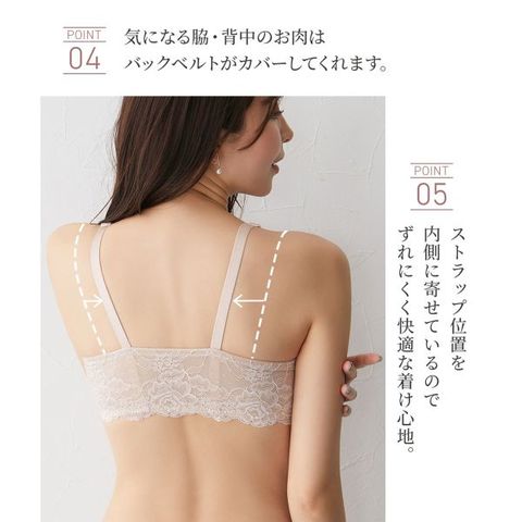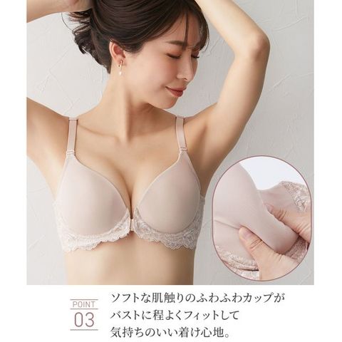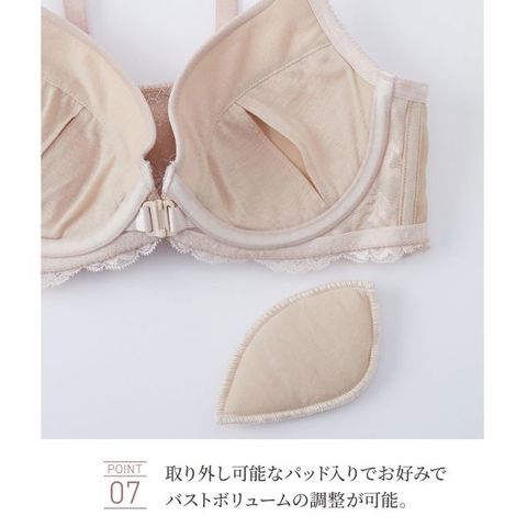 | 仕 様 | ・フロントホック ・3/4カップ ・パッド:あり ・パッドポケット:あり ・肩紐取外し:不可 ・ワイヤー入り ・サイドボーン:あり |