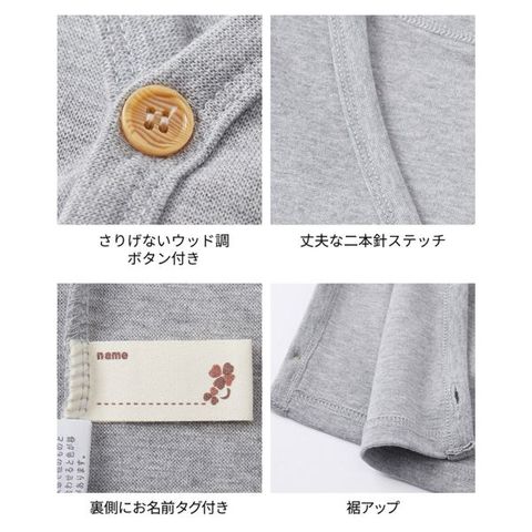 肌寒い日の羽織りとしてはもちろん、冷房対策や日差し対策にも活躍。自宅で手軽に洗えるので、お手入れも簡単です。ウッド調ボタンがさりげないアクセントに。
