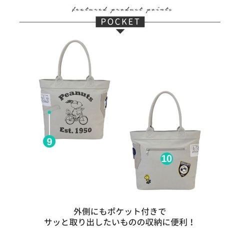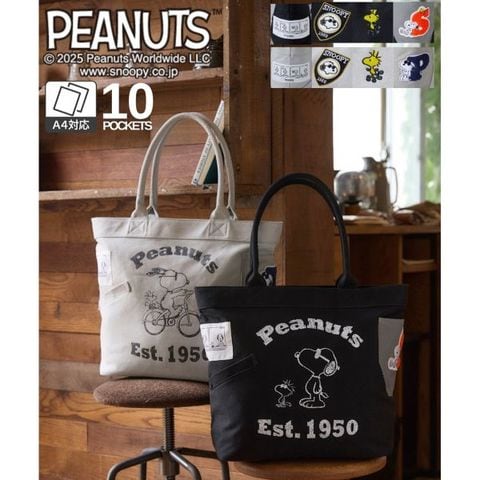 250912 スヌーピー トートバッグ ニッセン ヴィンテージデザイン キャンバス生地 ラージトート A4対応 10ポケット デイリーユース 手提げ 肩掛け ショルダー バック かばん キャラクター かわいい a4 おおきい