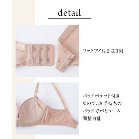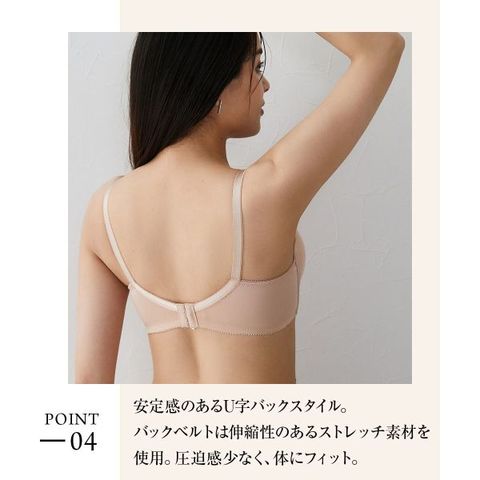 シンプルなデザインとベーシックなカラー展開で、普段使いに最適。縫い目のないつるんとしたシームレスカップは、着用時の凸凹問題を軽減し、ラインの出やすいアウターにひびきにくく好相性。