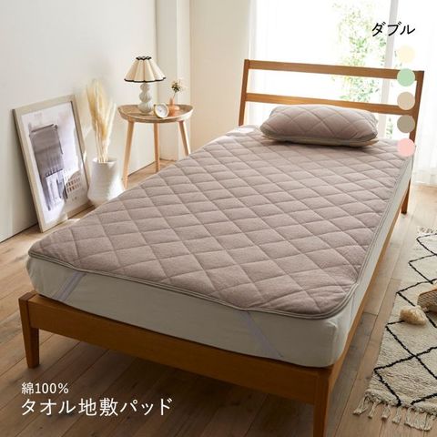 肌触りの良い綿100%タオル地を使用した、ニッセンの敷きパッド。ふんわりとした優しい風合いで、一年を通して快適にお使いいただけます。