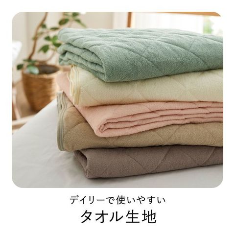 肌触りの良い綿100%タオル地を使用した、ニッセンの敷きパッド。ふんわりとした優しい風合いで、一年を通して快適にお使いいただけます。