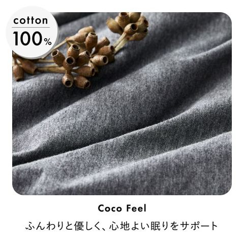 まるでTシャツのような、やわらかな肌触りの綿100%天竺ニットを使用した、ニッセンの掛け布団カバー(Coco Feel)。ふんわりと優しく、心地よい眠りをサポートします。