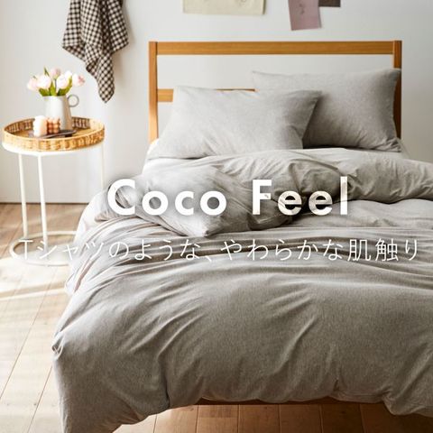 まるでTシャツのような、やわらかな肌触りの綿100%天竺ニットを使用した、ニッセンの掛け布団カバー(Coco Feel)。ふんわりと優しく、心地よい眠りをサポートします。