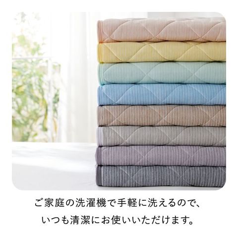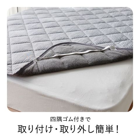 吸汗速乾機能も備わっており、寝汗をかいてもサラッと快適な寝心地をキープ。四隅ゴム付きでずれにくく、取り付けも簡単です。ご家庭の洗濯機で手軽に洗えるので、いつでも清潔にお使いいただけます。