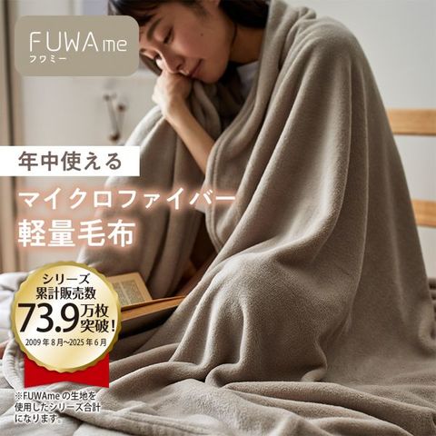 「軽くて、柔らかくて、暖かい」を追求して生まれた、マイクロファイバーふんわり軽量毛布【FUWAme】。累計73.9万枚を突破し、16年間愛されるロングセラーシリーズです。