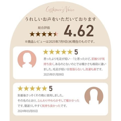 心地よさの秘密は、繊維の間に空気を取り込み、体を優しく包み込んでくれるので、ふわふわであたたか。乾燥が気になる季節も静電気軽減加工が施されているので安心です。
