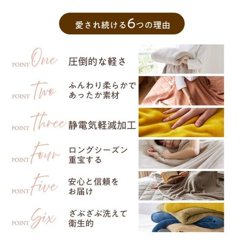 心地よさの秘密は、繊維の間に空気を取り込み、体を優しく包み込んでくれるので、ふわふわであたたか。乾燥が気になる季節も静電気軽減加工が施されているので安心です。
