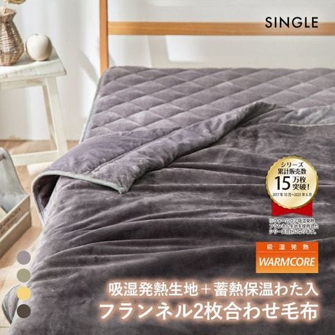 あったかくて気持ちいい寝具を追求した「ウォームコア」シリーズ。この2枚合わせ毛布は、吸湿発熱と蓄熱保温わたのダブル効果で、一晩中暖かく快適な眠りをお届けします。