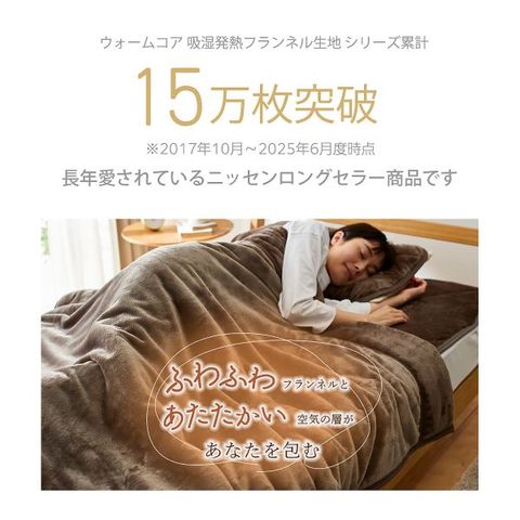 累計13.4万枚突破の人気商品。水分を熱に変える最大吸湿発熱温度+4.4℃のフランネル生地が、体をじんわりと温めます。中わた入りでふっくらとしたボリュームがあり、暖められた空気を逃がしません。