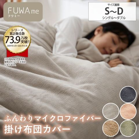 軽さ、柔らかさ、暖かさを追求し、名付けられたニッセン「FUWAme」。この掛け布団カバーは、軽くて優しい肌触りのマイクロファイバー素材が、身体を優しく包み込みます。
