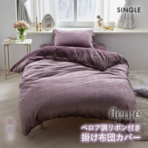 ベロア調リボン付き掛け布団カバー フルーエ 大人可愛い シングル nissen ニッセン