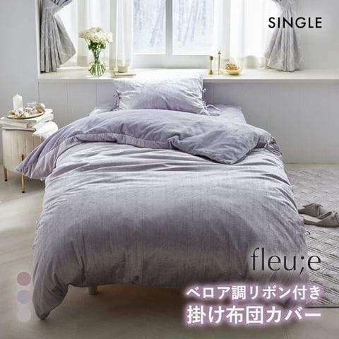 ベロア調リボン付き掛け布団カバー フルーエ 大人可愛い シングル nissen ニッセン