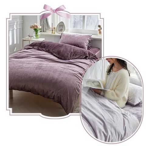 ストライプの様なデザインの上品な光沢感ベロア調生地は、光や角度で表情を変え、お部屋に華やかさと高級感をプラスします。裏面はあったかなめらかなフランネル素材を使用し、リバーシブルで両面楽しめます。
