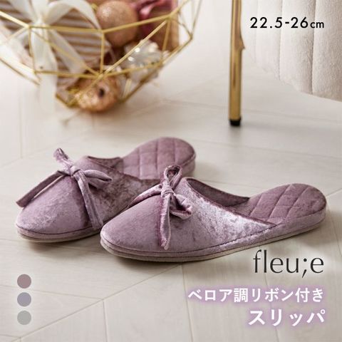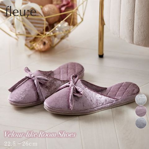 「毎日を可愛く、毎日を自分らしく。」 fleu;eが贈る、ふんわりなめらかな肌ざわりのベロア調ルームシューズです。