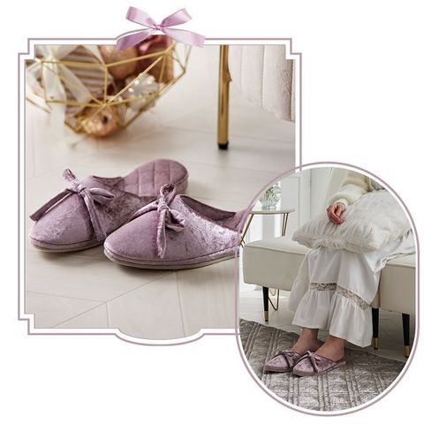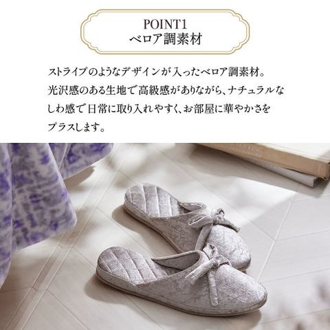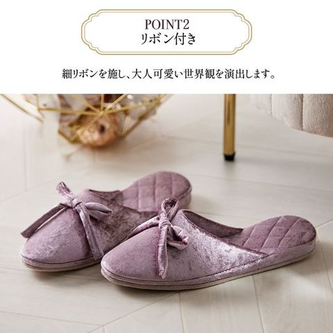 ベロア調リボン付き スリッパ フルーエ 大人可愛い nissen ニッセン