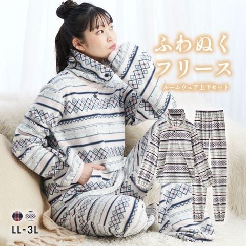 ニッセン あったかフリース ルームウェア。寒い季節にぴったりの、ふわふわで快適な上下セット。