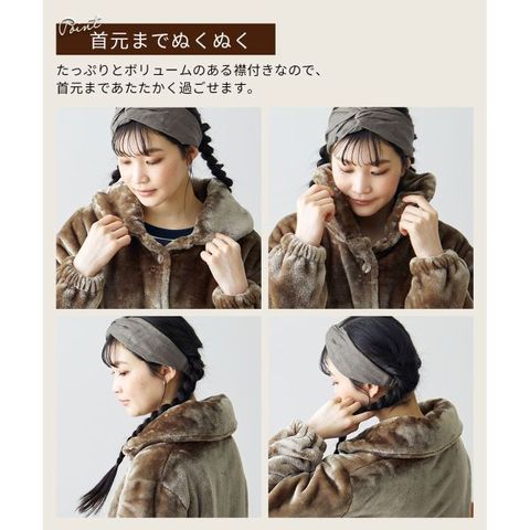 毛足が長く肉厚な本格毛布生地を表も裏も使用し、あたたかさとやみつきになるやわらかさを実現しました。腰まですっぽり隠れる丈と、ボリューム襟で首元までしっかり保温。