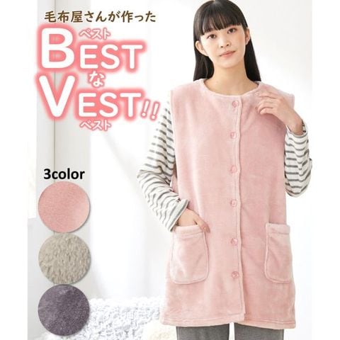 毛布生地 あったかベスト。毛布屋さんが作った本格毛布生地を使用した、「羽織る毛布」ベスト!