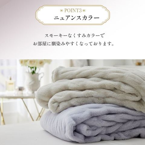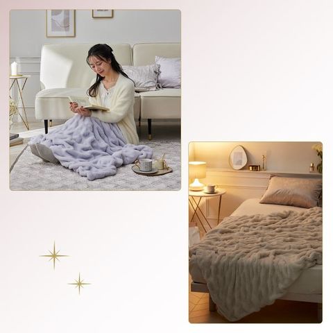「毎日を可愛く、毎日を自分らしく。」 fleu;eから、トレンドのラビットファー調素材を使ったくしゅくしゅデザインの毛布が登場。他にはない立体感が、お部屋に洗練されたアクセントと上質な空間を演出します。