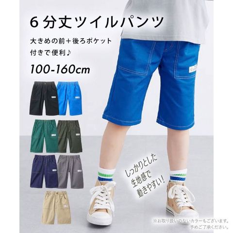 活発なお子様にぴったりの6分丈ツイルパンツ。丈夫なツイル素材で、公園遊びや普段使いに最適です。