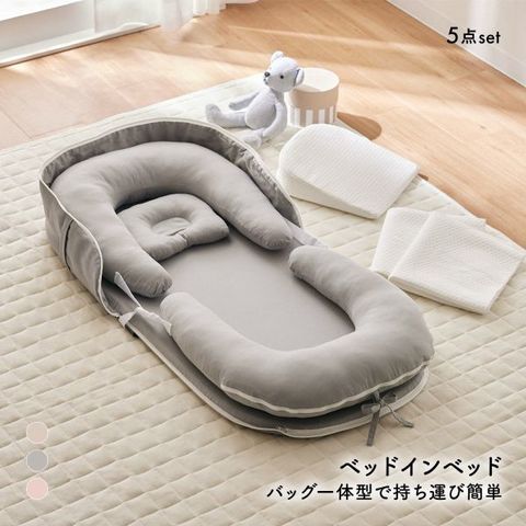 【送料無料】 新生児 折りたたみ ベッドインベッド5点セット Coco.Fa バッグ一体型コンパクトに持ち運び ベビー布団 洗濯できる nissen ニッセン