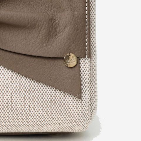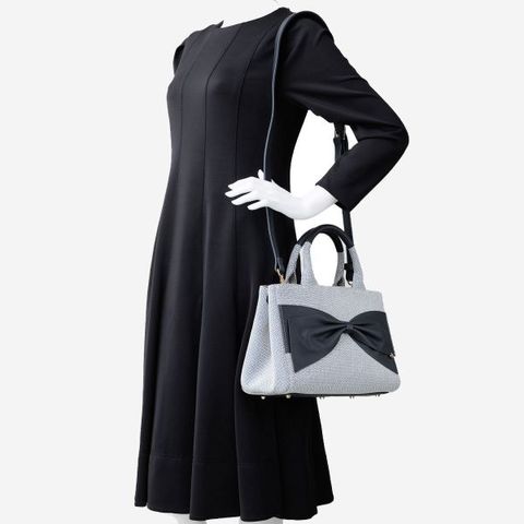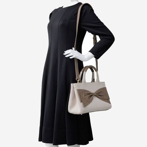 フロントのリボンとおそろいのしなやかなレザーがハンドルカバーにも採用されており、持つたび心地よさを実感できます。内部のラージポケットは可動式で、バッグの中が見えないようカバーする「スイングフラップ」として使用することもできます。
