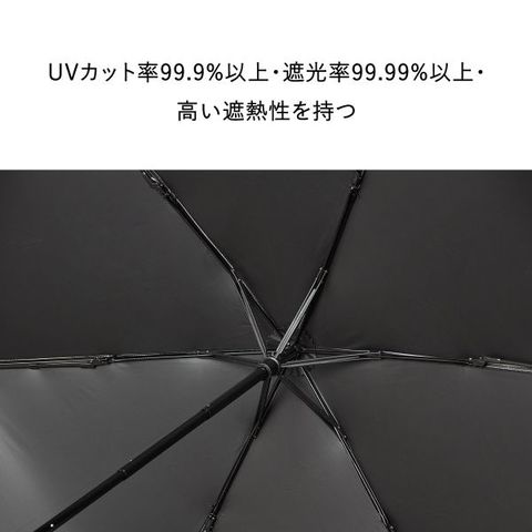 UVカット率99.9%以上、遮光率99.99%以上、高い遮熱性を持つ最高水準の日傘です。急な雨にも対応できる撥水加工が施されているので、天候を気にせず毎日使えます。