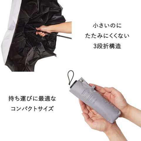 持ち運びに最適なコンパクトサイズで、強い風でも壊れにくい耐風構造。小さいのにたたみにくくない3段折構造で、性別問わず選びやすいユニセックスデザイン。