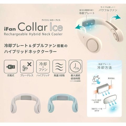 250612 iFan カラー アイス ネックファン Collar Ice 25 首かけ 冷却プレート 風量3段階 ペルチェ式 ハンズフリー 熱中症対策 扇風機 夏 暑さ対策 涼しい 冷風 冷却 冷感 ひんやり 首 充電式