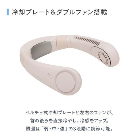 首にかけるだけでひんやりリフレッシュできるネックファンです。風と冷却プレートのWクール機能で、暑さを忘れる新しい体験を提供します。