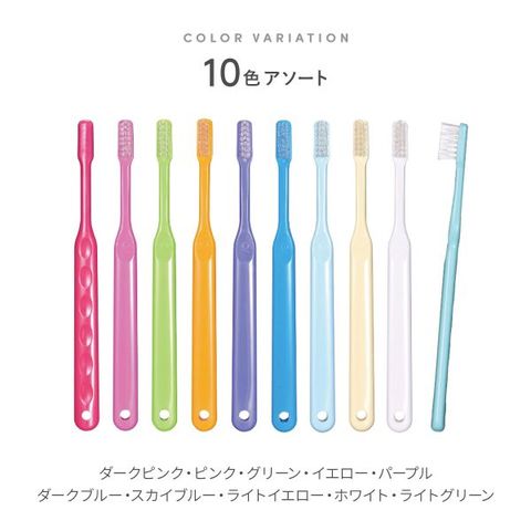 | 仕 様 | ・日本製 ・全長163mm ヘッド8×22mm ・毛の硬さ:ふつう (パッケージには【家庭用品品質表示法】に基づいた表記となっております。メーカーの商品名の表示は【使用感を示す】表記で、実際の使用した感触に合わせております。) ・耐熱温度:80度 ・10色アソート:ダークピンク・ピンク・グリーン・イエロー・パープル・ダークブルー・スカイブルー・ライトイエロー・ホワイト・ライトグリーン 【返品(お客様都合)について】 こちらの商品は商品の特性上、返品を受け付けておりません。予めご了承ください。 |
